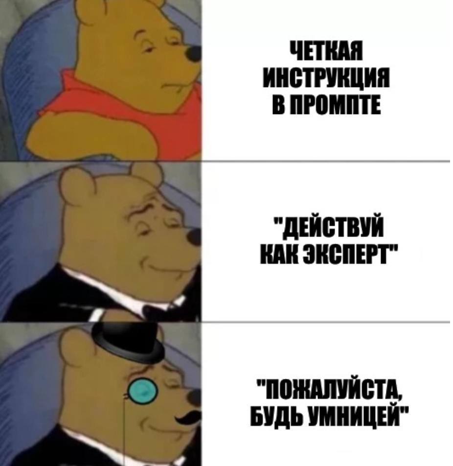 Однако, задать правильную роль не так просто, как кажется. Очень часто, задание роли может либо путать модель, либо вообще никак не влиять на ответ. Тут важно обстоятельно протестировать промпт на разных ролях, и сделать выбор.